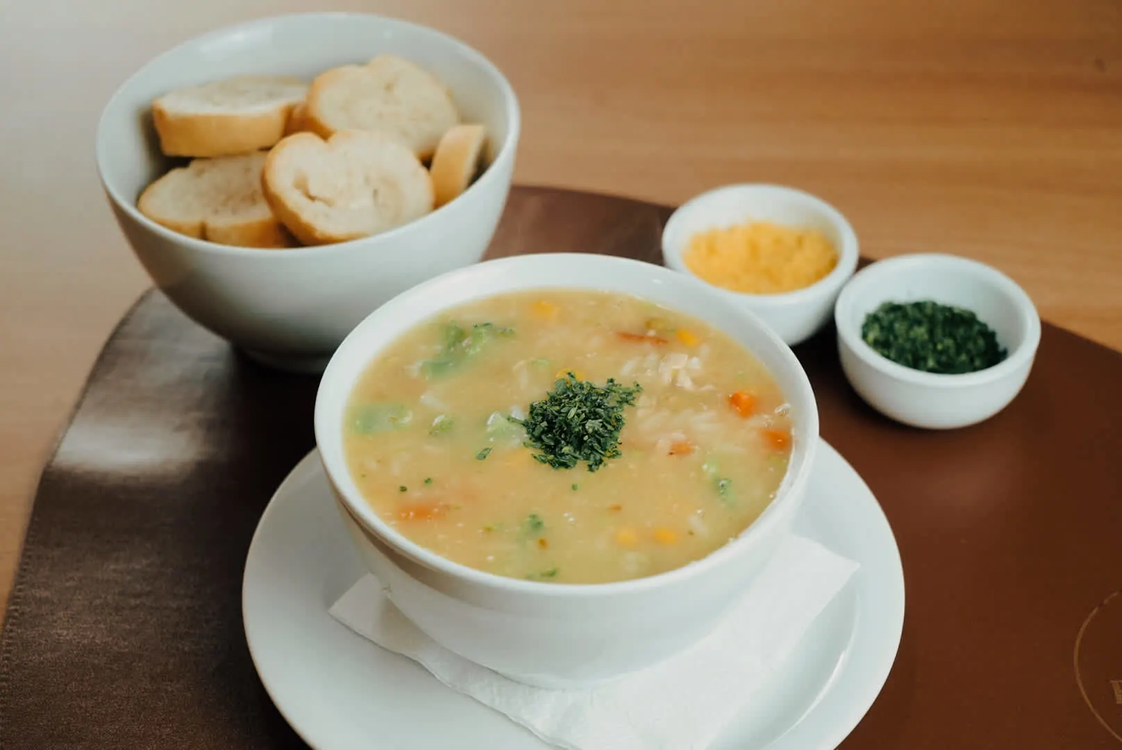 Caldo de feijão, linguiça calabresa, couve, macarrão talharim, batata e cheiro verde